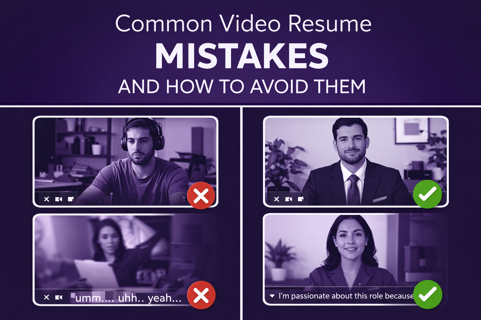 Video resume mistakes are often the result of trying to do too much—or too little—on camera. Unlike a paper CV or resume, a video requires you to consider how you look, sound, and present. For some, the pressure to be “perfect” leads to stiff delivery or overediting. For others, not preparing enough results in a disorganized or forgettable presentation.